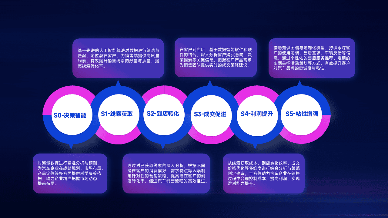 通过拓宽潜在客户来源、、优化线索分配并提高到店转化率,,,,以增强销售效率。。。同时,,,,利用线索数据不断优化分析模型,,,有效提升转化率,,,,扩大营销影响力。。。。